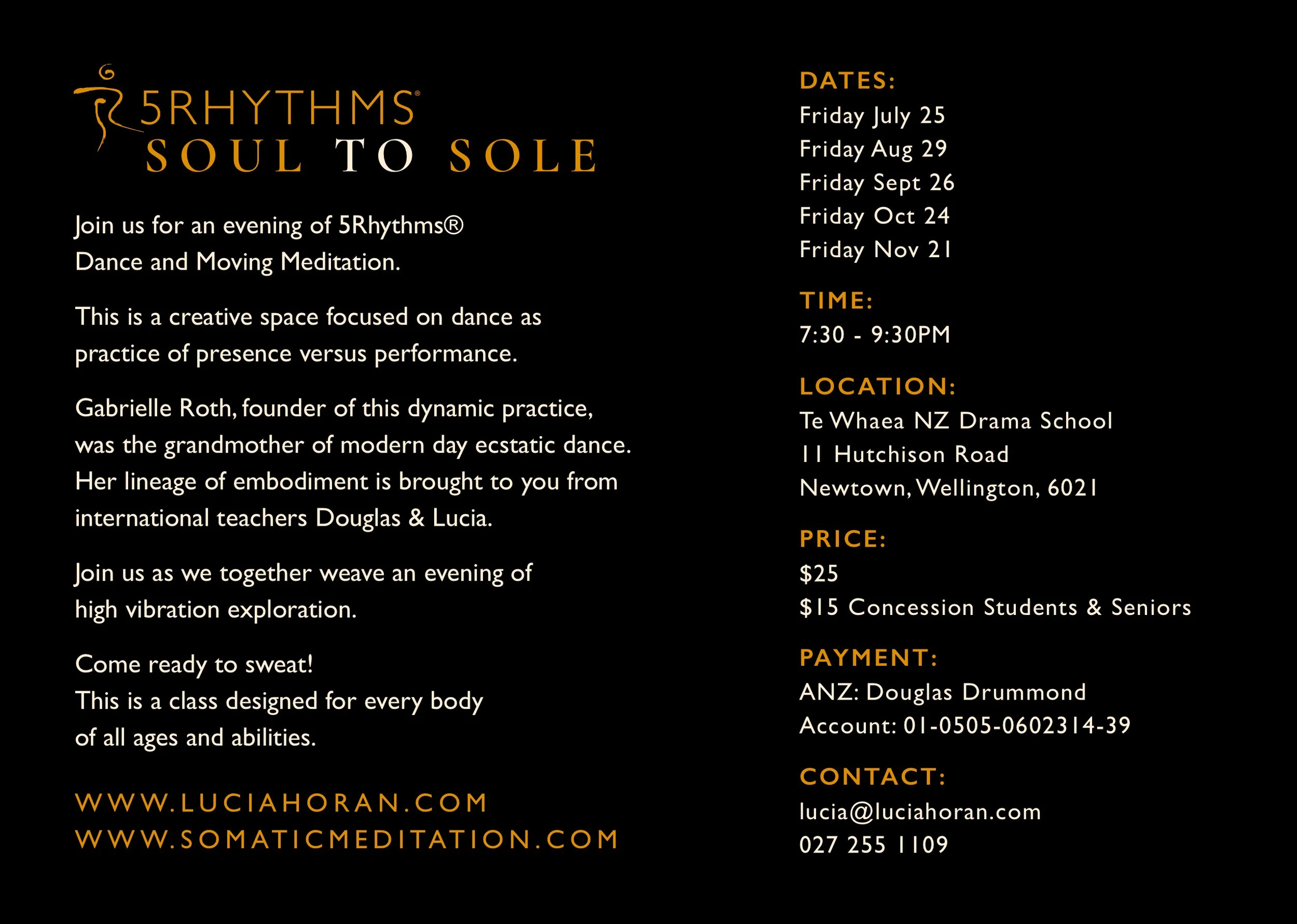 Gabrielle Roth, founder of this dynamic practice was the Grandmother of modern day ecstatic dance. Her lineage of embodiment is brought to you from international teachers Douglas and Lucia. Join us as we together weave an evening of high vibration exploration. Come ready to sweat! This is a class design for every body of all ages and abilities.
